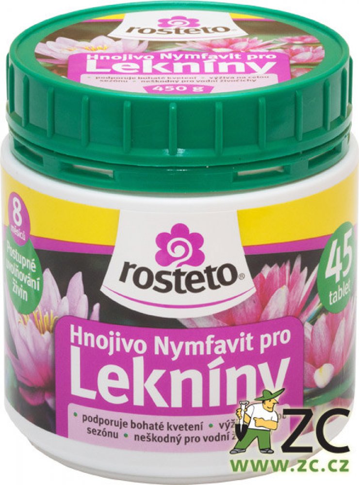 Nymfavit Rosteto je dlouhodobě působící hnojivo ve formě tablet, určené pro vodní rostliny, zejména lekníny.