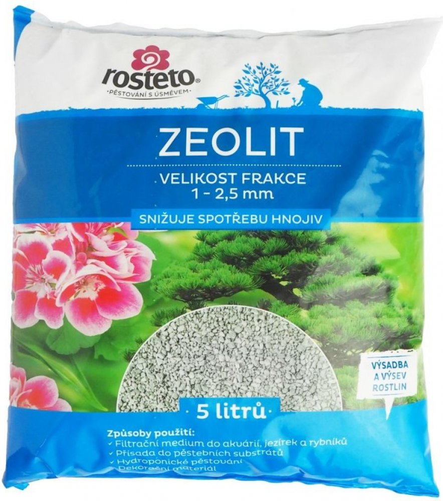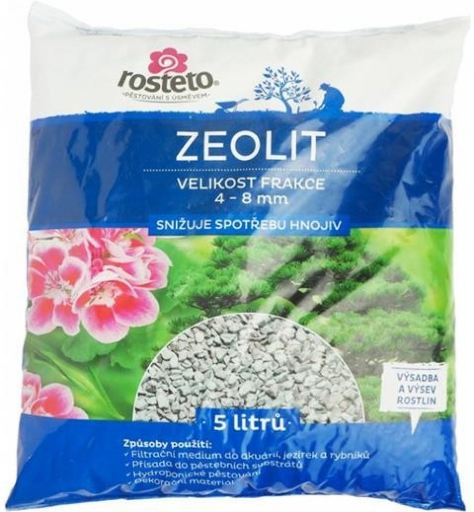 •Přísada do pěstebních substrátů: zeolit činí substrát vzdušným a vhodným pro zdárný růst kořenového systému rostlin, váže na sebe a následně postupně uvolňuje veškerá používaná hnojiva, zlepšuje hospodaření s vodou a jeho struktura je ideálním prostředím pro množení užitečných půdních bakterií. Dále je zeolit vhodný ke zúrodnění kyselých, těžkých jílovitých a nebo písčitých půd, kde působí jako půdní kondicionér.