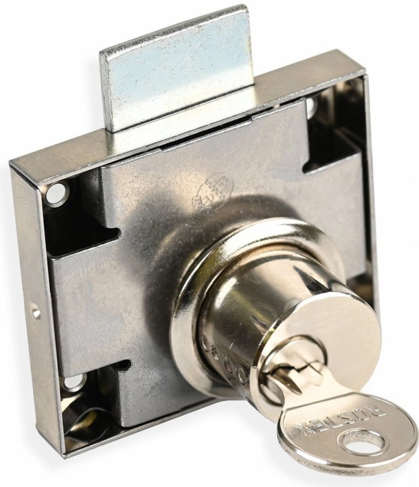 Nábytkový zámek Rostex 118/50 s cylindrickou vložkou je určen k uzamykání skříněk pro dveře o tloušťce 19 mm.
