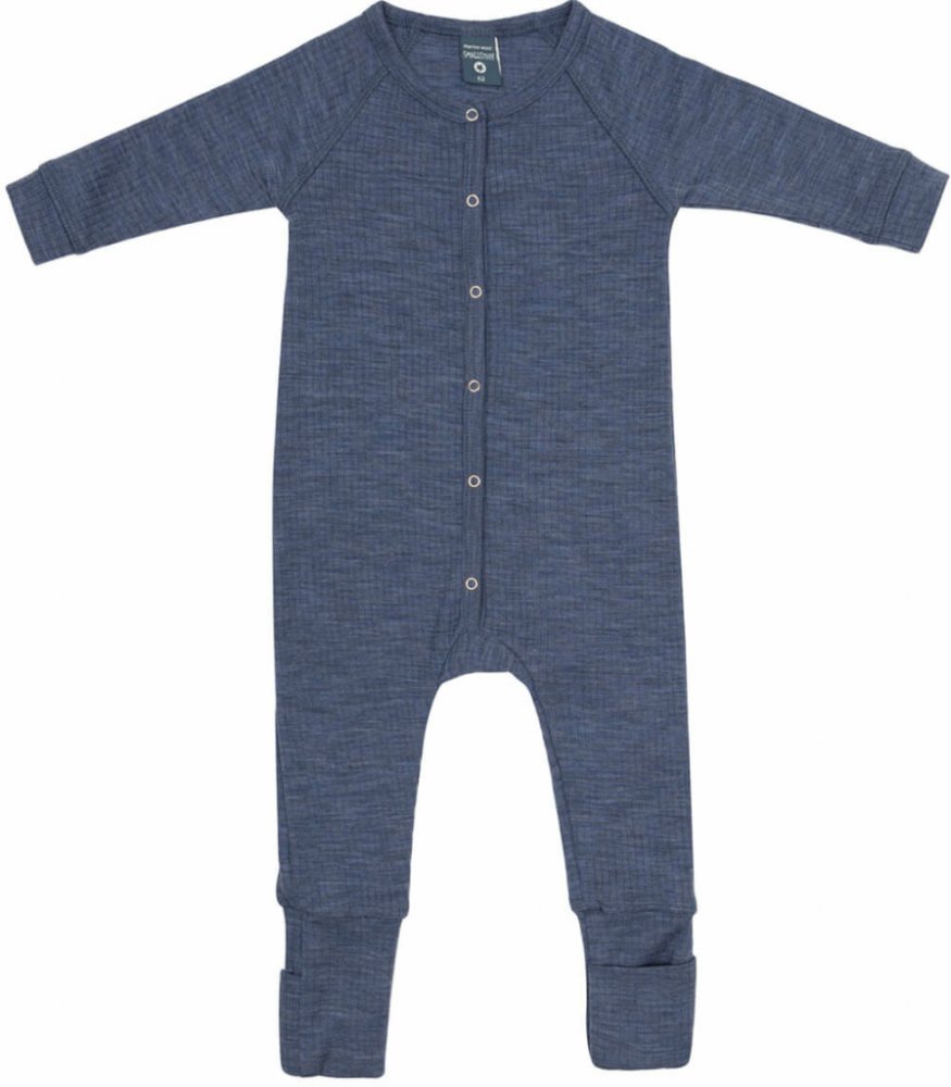 Rostoucí merino pyžamo dětské overal modré denim melange Smallstuff