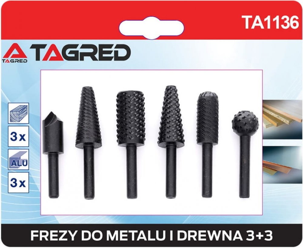 Rotační rašple, frézy HSS na kov či dřevo, sada 6 ks