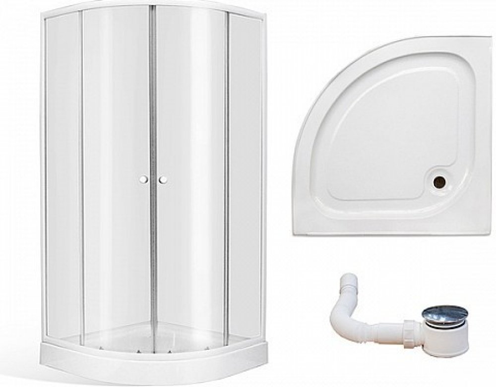Čtvrtkruhový sprchový kout s dvoudílnými posuvnými dveřmi. Výška 1830 mm, obecné rozměry 80x80 a 90x90 cm, rádius 550 mm. Stabilní hliníkové profily nepodléhající korozi v bílé barvě. Bezpečnostní sklo TRANSPARENT o síle 4 mm. Čtvrtkruhová samonosná sprchová vanička o rozměrech 790x790 a 890x890 mm, výšce 110 mm a rádiusu R550 je vyrobena z akrylátu. Plocha pro stání je opatřena jemným protiskluzo...