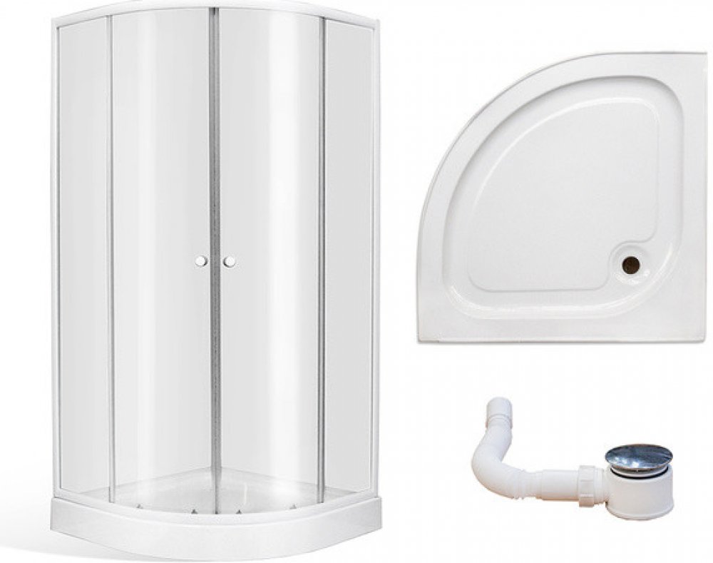 Čtvrtkruhový sprchový kout s dvoudílnými posuvnými dveřmi. Výška 1830 mm, obecné rozměry 80x80 a 90x90 cm, rádius 550 mm. Stabilní hliníkové profily nepodléhající korozi v bílé barvě. Bezpečnostní sklo TRANSPARENT o síle 4 mm. Čtvrtkruhová samonosná sprchová vanička o rozměrech 790x790 a 890x890 mm, výšce 110 mm a rádiusu R550 je vyrobena z akrylátu. Plocha pro stání je opatřena jemným protiskluzo...