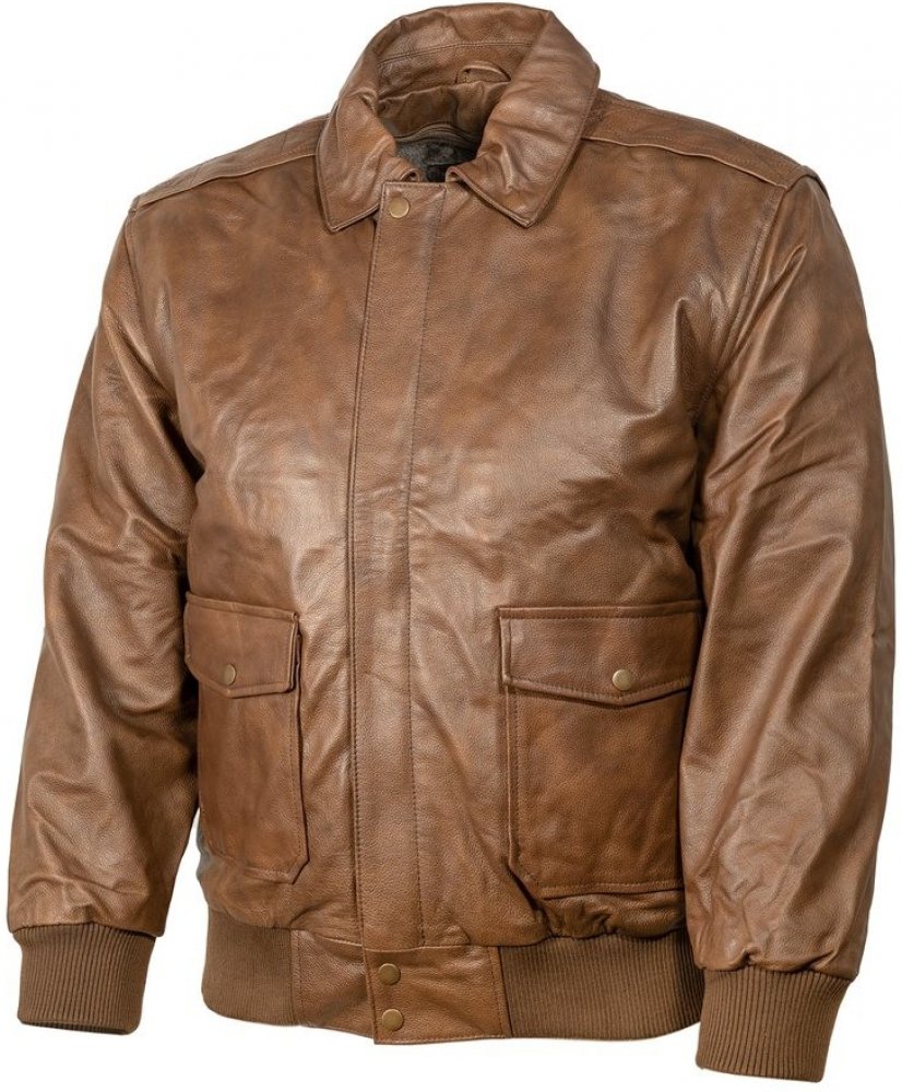Kožená bunda v americkém stylu A2. Zapínání na zip a dva druky. Dvě přední kapsy kryté klopou.