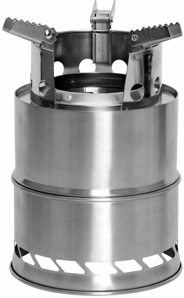 Praktický vařič na tekutá i tuhá paliva. Vše jednoduše složeno do látkového pouzdra. Součástí balení je i teleskopické "brčko" o délce 48 cm, které slouží k případnému bezpečnému rozfoukání ohně pod vařičem. Vařič je vybavený třemi sklopnými nožičkami se zoubkováním. Pro použití pevného nebo tekutého lihu je v sadě menší mistička, kterou umístíte na perforované sítko.