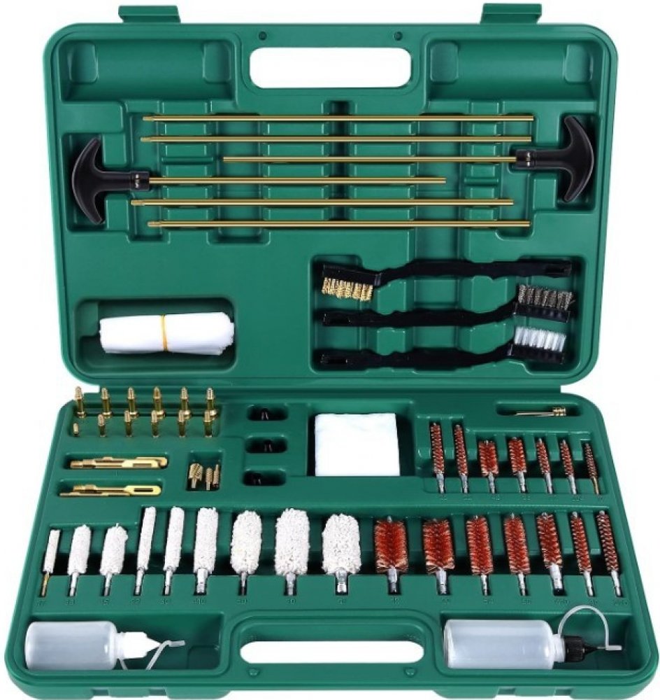 Univerzální sada na čištění všech druhů zbraní a hlavní. Pro pušky, pistole, brokovnice, kulovnice, vzduchovky. Obsahuje kartáčky, lacetky, smyčky, adaptéry, protahovací trny, čistící látky a lahvičky na rozpouštědla a oleje.
