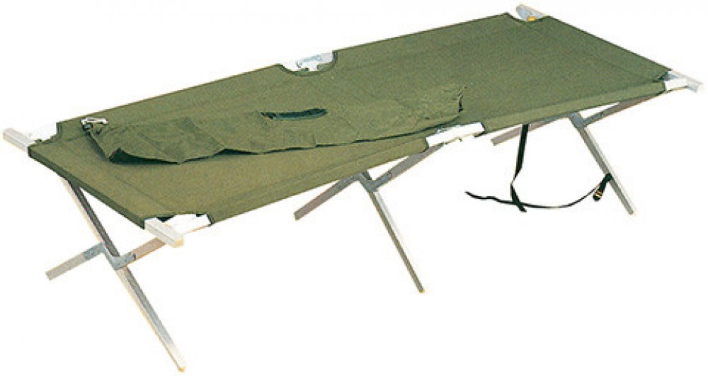 Skládací armádní lehátko, používané i US Army. Pevný hliníkový rám, polyesterový potah. Rozměry: 190 x 66 x 44 cm, max. nosnost: 90 kg. Dodáváno včetně transportního vaku.