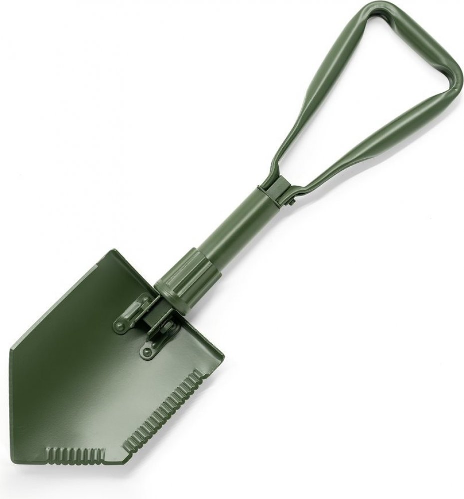 Třídílná skládací lopatka typ NATO EXTREM. Vynikající zpracování a pevné kvalitní materiály předurčují tuto lopatku k použití v tvrdých podmínkách. - masivní pevná plocha rýčku - uchycení rýčku ve čtyřech bodech zajišťuje trvanlivost a stabilutu - díky polohovatelnému kloubu lze použít i jako motyku - velký, dobře sednoucí do ruky, šroub k povolení polohy lopatky - velmi kvalitní zpracování z lehkých a pevných materiálů - všechny spoje a šrouby v oliv barvě - zkosené a zostřené hrany rýčku umožňují použít ho jako nouzovou sekyru či pilu Třídílná skládací lopatka s pouzdrem s možností uchycení na opasek. Ideální pomocník do auta na zimu na odhazvání sněhu. Váha: 1400 gramů vyrobeno dle normy: NSN #5120-01-518-6126 -
