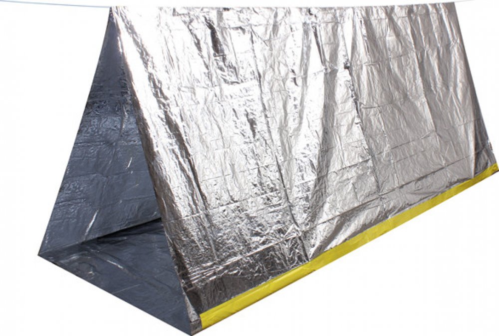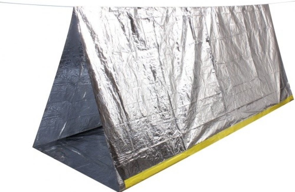 Tento tenký a lehký hliníkový stan je vhodny pro nouzové řešení přespání nebo neplánovanému pobytu v venku přes noc či v dešti. Díky folii, která se používá u zachranných dek k udržení tělesné teploty raněného, nepropoučtí tento provizorní stan teplo. Díky své váze a rozměru vám nezabere žádné místo v batohu, lékarničce, skůtru, čtyřkolce, automobilu apod.Po rozbalení má stan podstavec velký cca 243x153cm, to je dostatečné místo pro přespání dvou osob. Součástí balení je šňůra 2,5 mmx3m pro napnutí stanu.