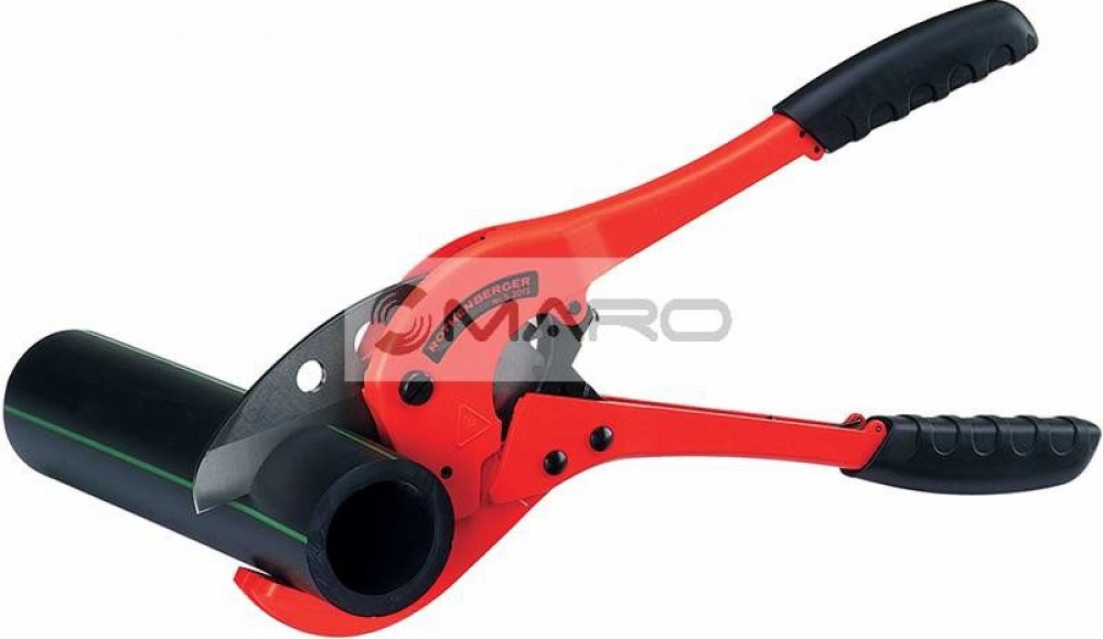 Nůžky na plastové trubky pro stříhání trubek z PP, PE, PE-X, PB a PVDF • minimální námaha při stříhání • přesný pravoúhlý řez • přesné bodové nastřižení bez deformace • přesný přenos síly a nucený vedený řezný posuv • automatické, kontrolovatelné otevření čepele po stisknutí tlačítka
