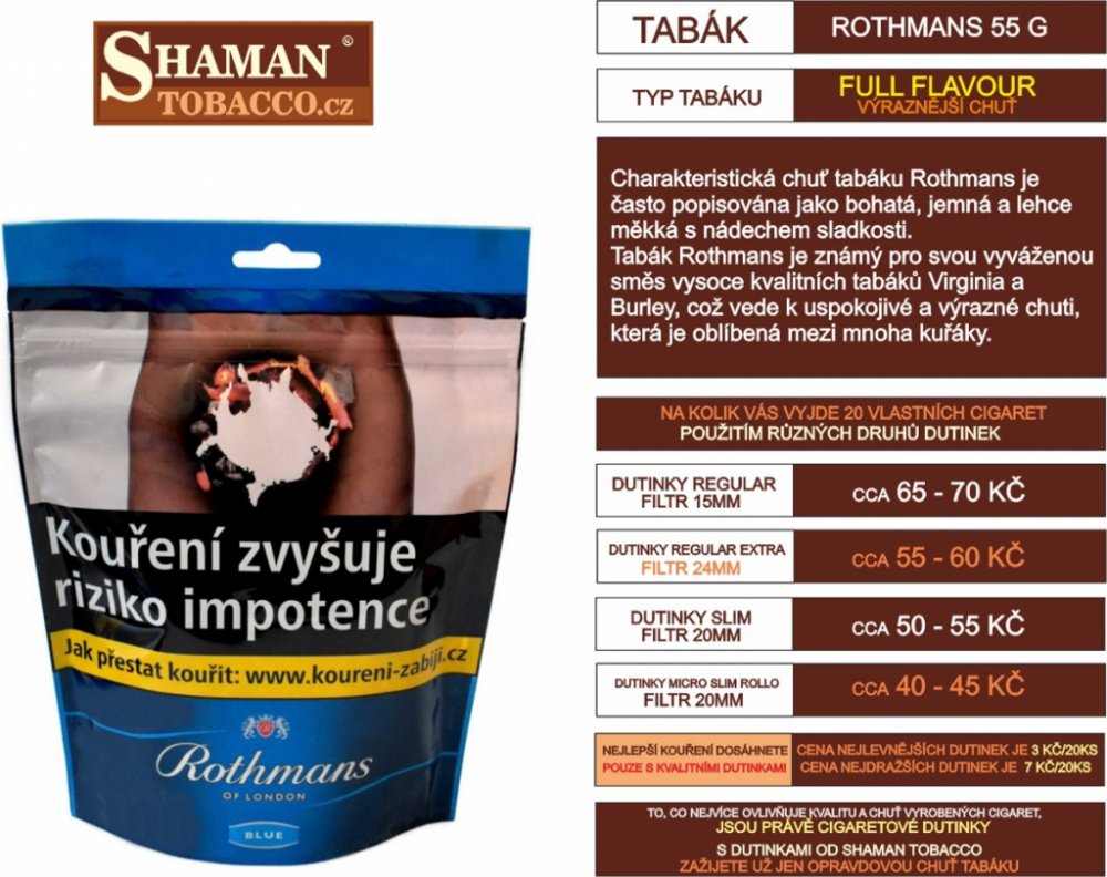 Uživatelé také hledali ROTHMANS BLUE Rothmans Tabák cigaretový Silver 30g Rothmans Tabák cigaretový Blue 57g SO Rothmans Silver 200ks cigaretové dutinky