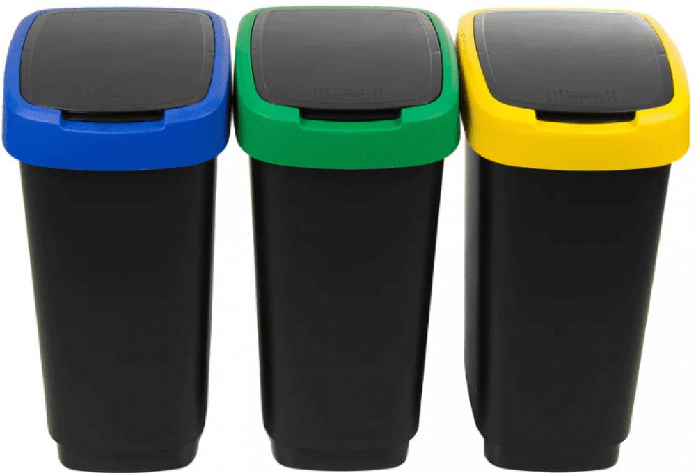 Set tří odpadkových košů TWIST 25L na třídění odpadu.