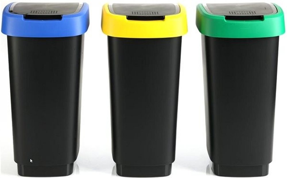 Sada se skládá ze tří odpadkových košů s barevnými víky - barevně odlišené pro snadnější třídění.