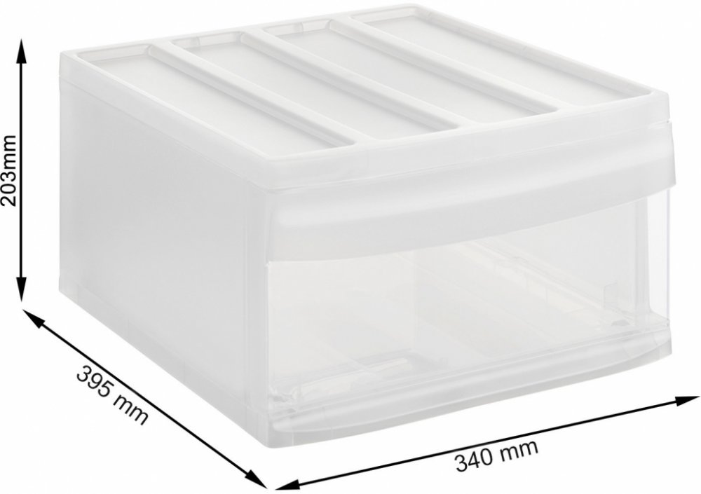 L: 34 × 39,5 × 20,3 cm prostorný formát na oblečení, textil, větší hračky, stolní hry, sezónní věci nebo objemnější vybavení