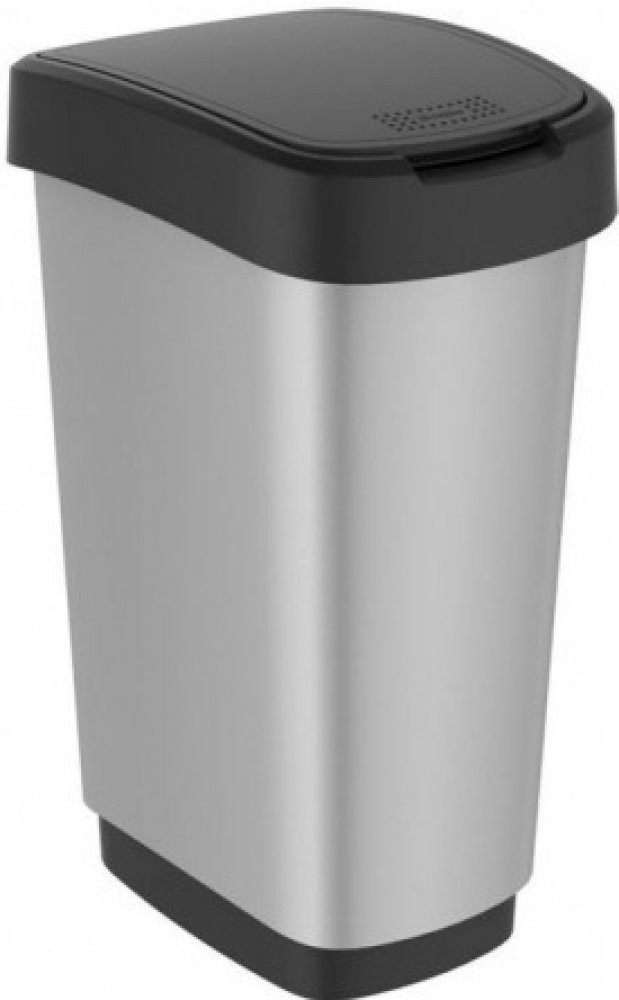 Metalický plastový odpadkový koš s odklápěcím víkem. Dva způsoby otevření koše. Objem 50 L. Kvalitní materiál a provedení od švýcarské značky Rotho. Klasické a neutrální provedení zapadne do každého interiéru.