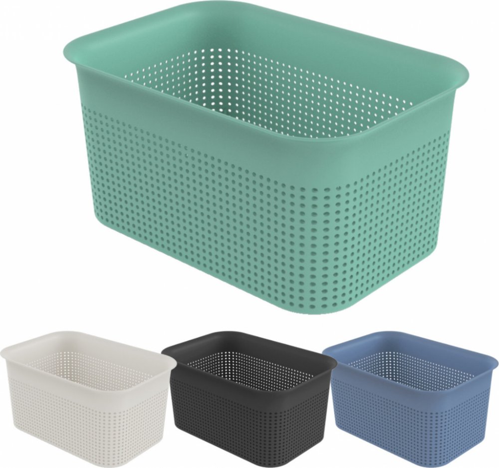 Úložný box s děrovanou strukturou. Jednoduchý a moderní design. Zaoblené rohy. Objem: 4,5 L. Kvalitní materiál a provedení od švýcarské značky Rotho.