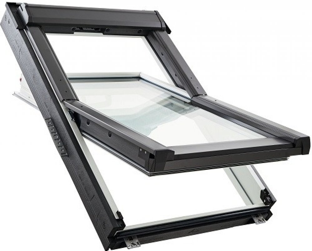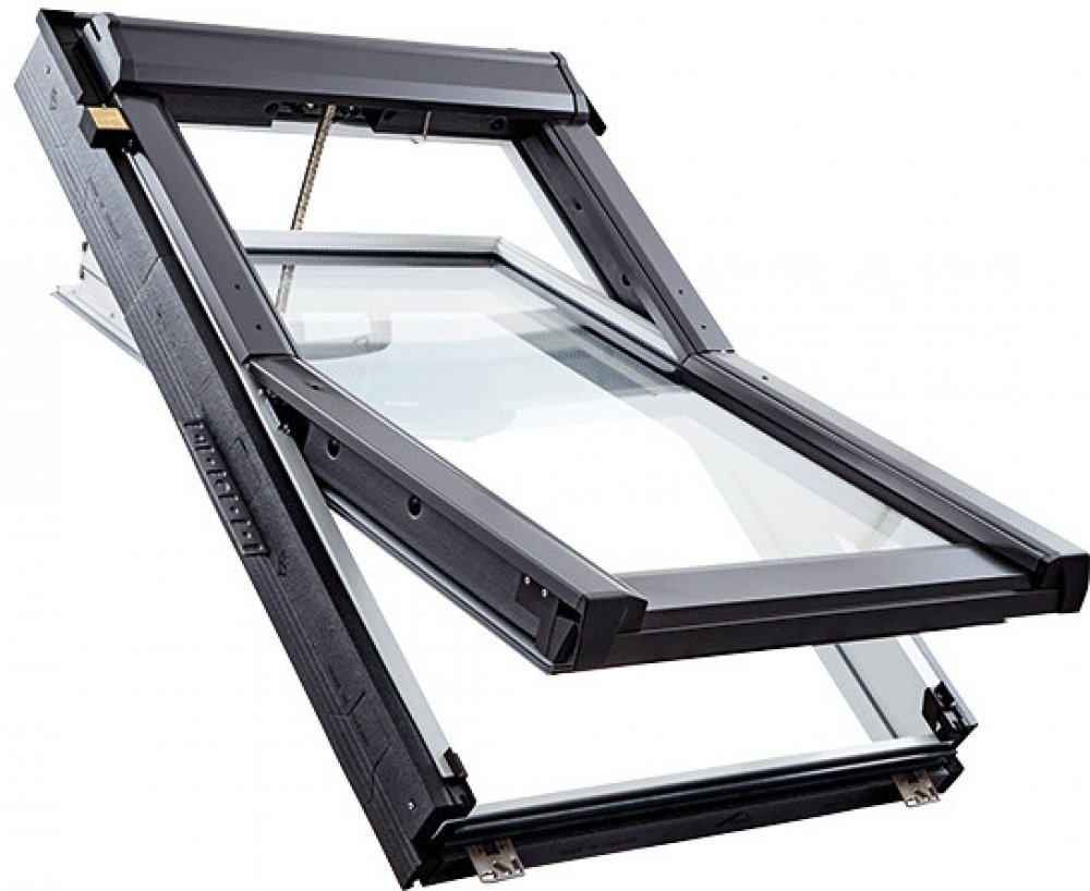 kyvné, klika v horní části křídla, bílý plastový rám, dvojsklo Standard, kování s tříbodovým uzavíráním, zateplovací blok, Al oplechování, šířka 1140 mm, výška 1600 mm