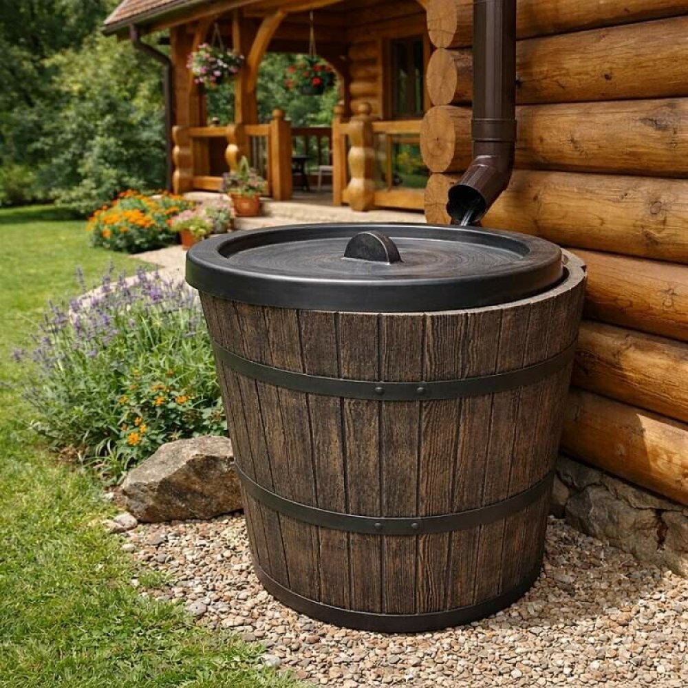 Koupací sud v imitaci hnědého dřeva má velmi pěkné zpracování. Je vhodný pro použití ke všem saunovacím zařízením v interiéru i exteriéru.