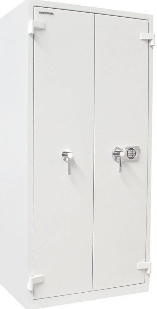 · odolnost proti ohni: 1 hodina pro papírové dokumenty všech typů · dvouplášťová, barva lakování skříně RAL 7035 · dodávána s trezorovým bezpečnostním zámkem třídy A dle EN 1300 na klíč nebo s elektronickým zámkem třídy B dle EN 1300 (bez nouzového mechanického otevírání) · třístranný uzamykací mechanismus · venkovní závěsy umožňují úhel otevření až 180° · bezpečnostní třída S2 dle normy EN14450