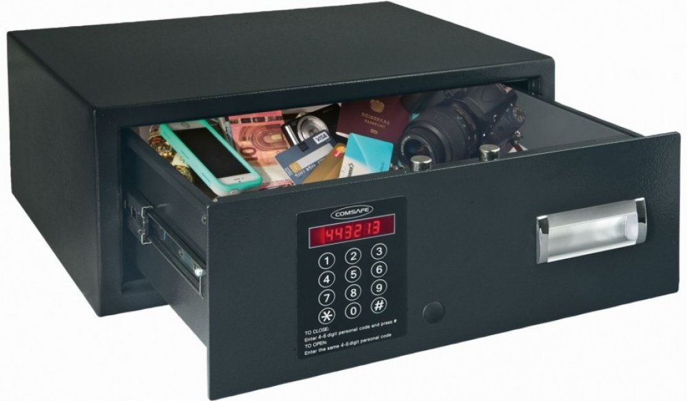 Hlavní výhody: Elektronický zámek s 2 klíči Napájení 4 x 1,5V AA baterií (není součástí balení) Stabilní zásuvka Požární záhyb na dveřích Automatické otevření a uzamčení bez použití kliky Mechanické nouzové otevírání s cylindrickým zámkem a 2 klíči Otvory na ukotvení na spodní a zadní straně Elektronický sejf je svým tvarem ideální do vašeho bytu, domu nebo kanceláře. Má tvar jako klasická zásuvka, ale je vybaven elektronickým zámkem a mechanickým nouzovým otevíráním s cylindrickým zámkem a 2 klíči.. Zámek je napájen klasickými 1,5V AA bateriemi a v případě vybití poslouží k otevření nouzový klíč. Stabilní teleskopické výsuvy se postarají o bezproblémové vysunutí zásuvky. Uvnitř je dostatek prostoru pro osobní dokumenty, cestovní doklady a drobné cennosti. Předpřipravené otvory na spodní a zadní straně poslouží pro bezproblémové ukotvení na podlahu, stěnu nebo vestavěný nábytek. Kotvící materiál je součástí dodávky.