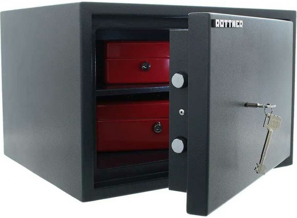 Hlavní výhody: Certifikovaný trezorový zámek s 2 klíči Bezpečnostní třída S2 (ČSN EN 14450) Možnost úschovy aj zbraní a munice podle č. 190/2003 Sb Dvouplášťový nábytkový trezor Tloušťka pláště dveří 70 mm Požární záhyb na dveřích Polička uvnitř Otvory na ukotvení na spodní a zadní straně Antracitový dvouplášťový nábytkový trezor nabízí dostatek prostoru pro důležité doklady, úřední dokumenty nebo cestovní doklady. Certifikovaný trezorový zámek a bezpečnostní třída S2 (ČSN EN 14450) zajistí, že k uloženým věcem budete mít přístup jedině vy. V trezoru je možné uschovat i zbraně nebo munici. Polička uvnitř rovnoměrně rozdělí prostor, abyste si věci mohli lépe zorganizovat. Trezor jednoduše ukotvíte o podlahu nebo přes otvory v zadní stěně pomocí přiloženého kotvícího materiálu.