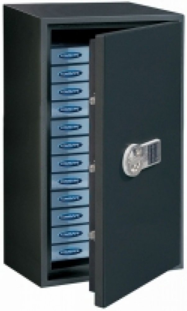 Náš největší model nábytkového trezoru z modelové řady Power Safe nabízí štědrý úložný prostor a vysokou míru variability uvnitř. Trezor se může pochlubit certifikovaným elektronickým zámkem a bezpečnostní třídou S2 (ČSN EN 14450). I díky tomu můžete dnu uložit nejen osobní cennosti, šperky, důležité dokumenty, šanony, malé pokladničky ale i zbraně a munici.