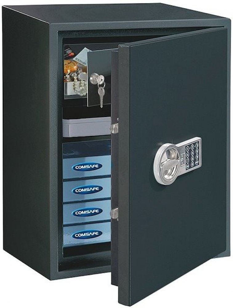 Hlavní výhody: Certifikovaný elektronický zámek Bezpečnostní třída S2 (ČSN EN 14450) Možnost úschovy zbraní a munice podle č. 190/2003 Sb Uzamykatelná vnitřní schránka s cylindrickým zámkem a 2 klíči Dvouplášťový nábytkový trezor Napájení 1 x 9V baterií (součástí balení) Tloušťka pláště dveří 70 mm Požární záhyb na dveřích Polička uvnitř Černý dvouplášťový trezor s certifikátem o bezpečnostní tříd...