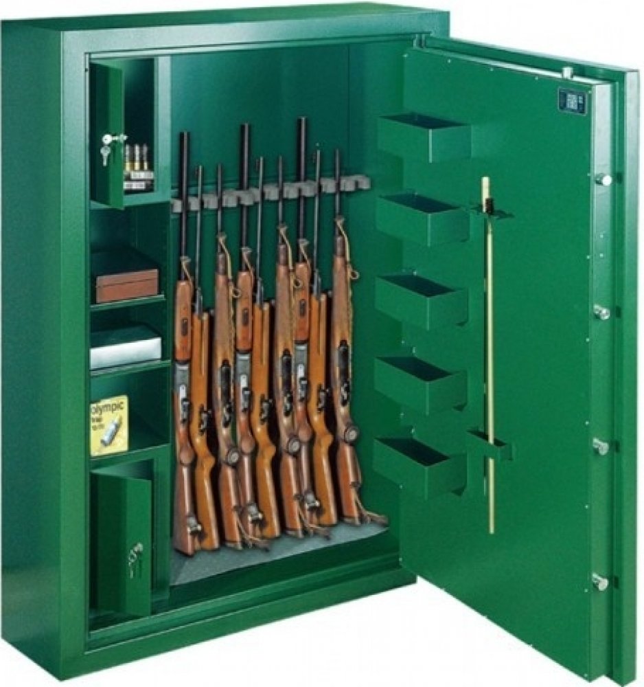 Trezor na zbraně Sport N Premium má ochranu 30/30 RU jednotek. Moderní konstrukce garantuje nejvyšší bezpečnost. Zámek je speciálně chráněn pancéřováním. Elektronický zámek! Lze dodat pouze v zelené barvě RAL 6020. V levé části trezoru oddělené přepážkou od prostoru na zbraně jsou 3 police + dolů a nahoru samostatné uzamykatelné boxy. Trezor je certifikován v bezpečnostní třídě 0 podle EN 1143-1.