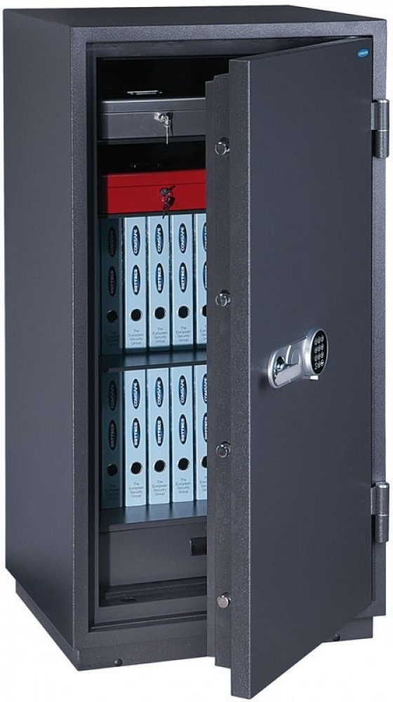 Trezor Sydney je kvalitní ohnivzdorný sejf, který je vhodný pro domácnosti i kanceláře za velmi přijatelnou cenu. Tyto moderní sejfy Sydney jsou odolné vůči ohni LFS 60 P podle EN 15659. Při extrémní teplotě chrání cennosti a důležité dokumenty po dobu jedné hodiny, přičemž vnitřní teplota nepřesáhne 170°C. Sejf Sydney má bezpečnostní konstrukci z vysoce kvalitního ohnivzdorného materiálu, která dokáže ochránit dokumenty před ohněm i vloupáním. Nábytkový trezor Sydney má vnitřní schránku pro skladování malých předmětů v horní části sejfu. Trezor Sydney se otevírá pomocí elektronického zámku s možností nouzového otevření. Ukotvení je možné díky 1 kotevnímu otvoru, kotvící materiál je součástí dodávky. Trezor je byvane jednou vnitřní schránkou výšky 85mm.