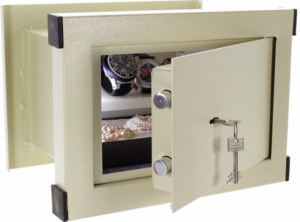 Stěnový sejf v elegantním provedení v přírodní béžové barvě poskytne potřebnou ochranu pro vaše věci. Disponuje standardní trezorový zámek s 2 klíči, který udrží vaše věci v bezpečí. Polička uvnitř sejfu pomůže při lepší organizací věci. Nezapomeňte, že kolem sejfu musí být stěna z betonu o síle min. 10 cm. Jednoduše si vyberte místo ve zdi, zabudujte sejf a vaše cennosti, doklady a důležité dokumenty budou v bezpečí.