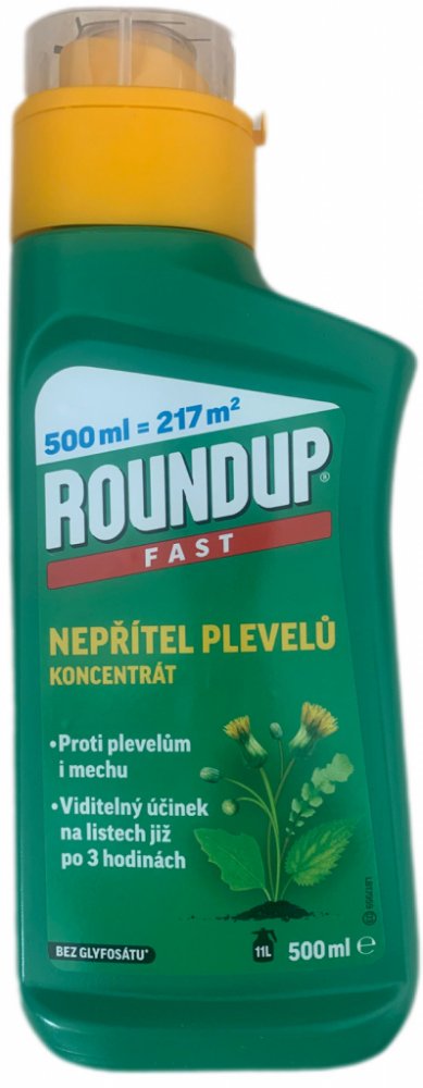 Vyzkoušejte Roundup Fast 500 ml koncentrát bez glyfosátu, moderní a šetrný herbicid pro rychlé odstranění plevele z vaší zahrady, chodníků, cest nebo dvorku. Tento přírodní postřik působí velmi rychle – viditelné výsledky již do 3 hodin po aplikaci. Díky koncentrátu si můžete upravit intenzitu postřiku podle potřeby, což zajišťuje efektivní a ekonomické použití. Roundup Fast neobsahuje glyfosát, a proto je vhodnější volbou pro ty, kteří hledají šetrnější alternativu k běžným chemickým herbicidům. Návod k použití: Nařeďte podle návodu (obvykle 170 ml koncentrátu na 1 litr vody), aplikujte postřikem za suchého počasí přímo na listy plevele. Vyvarujte se dešti alespoň 6 hodin po aplikaci. Zvolte Roundup Fast Koncentrát bez glyfosátu 500 ml a zatočte s plevelem rychle, účinně a šetrně k přírodě. Skvělá volba pro ekologicky smýšlející zahrádkáře! Bezpečnostní upozornění GHS07 - dráždivé látky Signální slovo: Varování Obsah nebezpečných látek kyselina pelargonová 565 g/l (tj. 56,5 % hmot.) EUH401 Dodržujte pokyny pro používání, abyste se vyvarovali rizik pro lidské zdraví a životní prostředí. H315 Dráždí kůži. H319 Způsobuje vážné podráždění očí. H412 Škodlivý pro vodní organismy, s dlouhodobými účinky. P101 Je-li nutná lékařská pomoc, mějte po ruce obal nebo štítek výrobku. P102 Uchovávejte mimo dosah dětí. P103 Před použitím si přečtěte údaje na štítku. P234 Uchovávejte pouze v původním obalu. P270 Při používání tohoto výrobku nejezte, nepijte ani nekuřte. P501 Odstraňte obsah/obal dle instrukcí na výrobku.