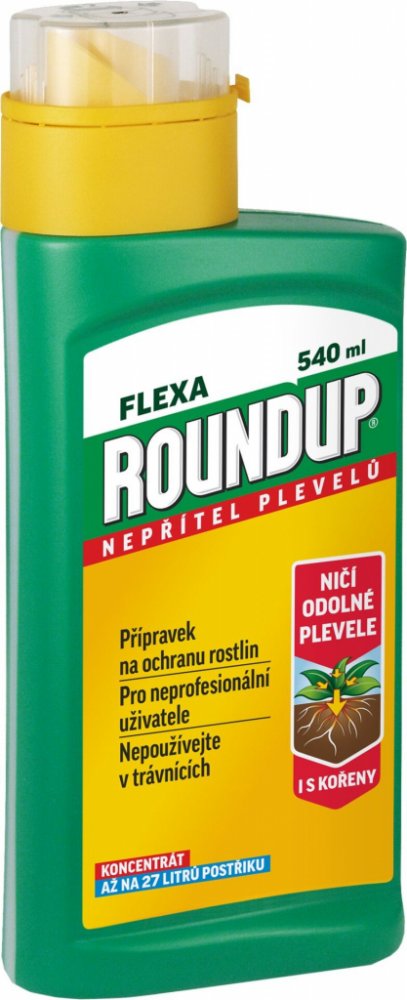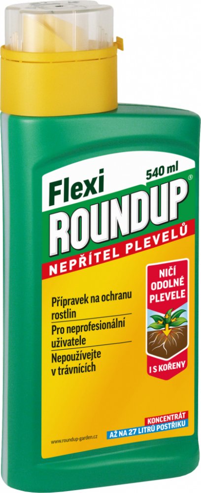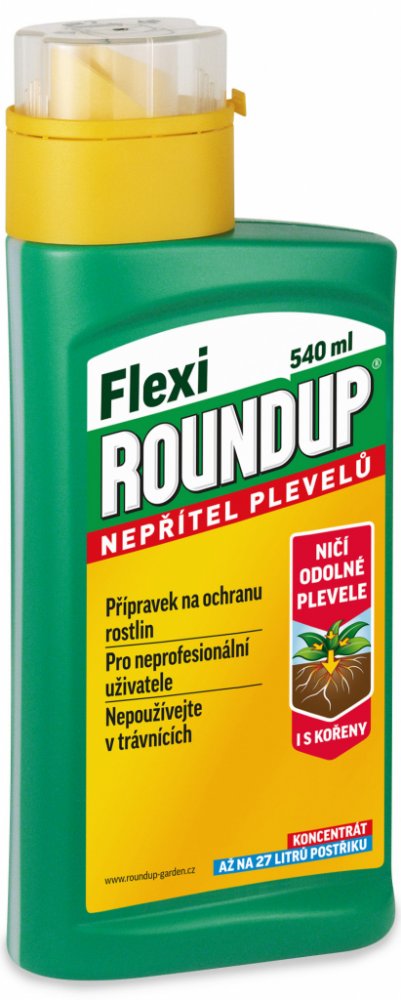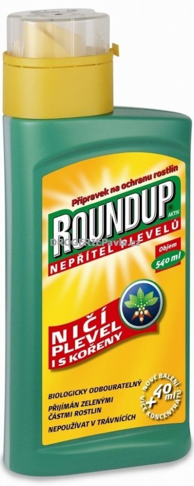 Herbicidní přípravek Roundup Aktiv ve formě kapalného rozpustného koncentrátu k hubení vytrvalých i jednoletých plevelů.