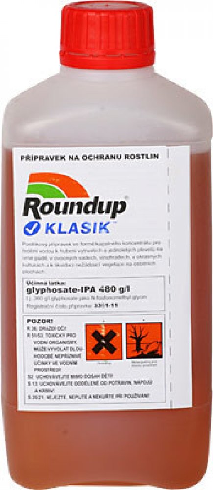 Popis zboží Roundup klasik 1 l Roundup Klasik PRO 1 l neselektivní herbicid - postřik proti plevelům se systémovým účinkem pro aplikaci na list, určený k likvidaci širokého spektra jednoletých a víceletých plevelů. Registrované použití Roundup Klasik: Jádroviny, peckoviny mimo broskvoň, réva vinná: mléč, pcháč, pýr plazivý, svlačec rolní: 3–6 l/max. 200 l vody/ha Lesní kultury: nálet dřevin, huben...