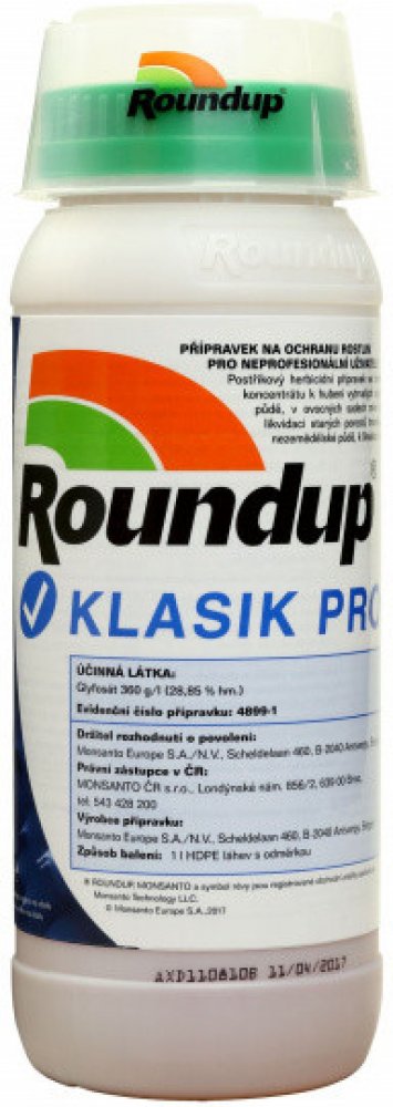 Přípravek je klasifikován jako zdraví škodlivý. H319 Způsobuje vážné podráždění očí. Totální herbicid pro hubení plevelů. Účinná látka: glyfosát 360 g/l Jak účinkuje? Roundup Klasik Pro je neselektivní listový herbicid se systemickým účinkem. Rostliny ho přijímají výhradně zelenými částmi a asimilačním prouděním je rozveden do celé rostliny včetně kořenového systému. Působením přípravku v kořenov...