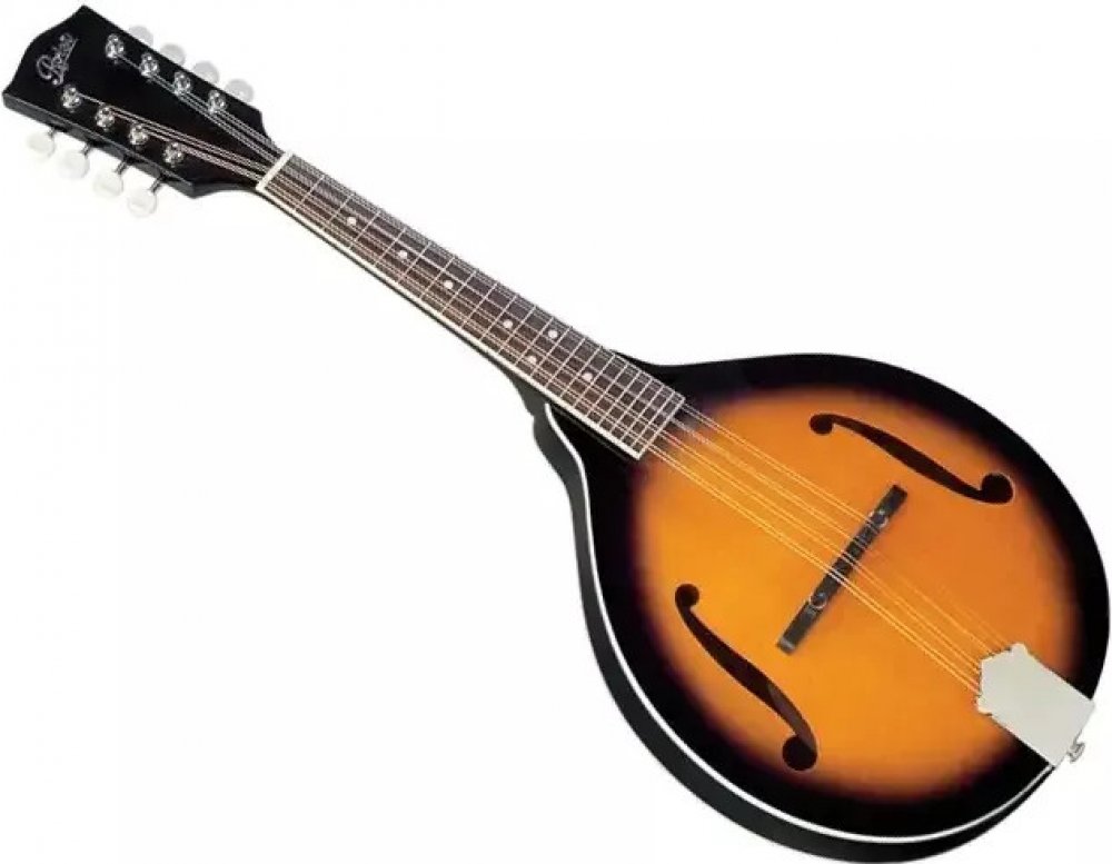 mandolína, typ A, 8 strun, vrchní deska: masivní smrk, tělo a krk: javor, hmatník a kobylka: tonewood, šířka nultého pražce 28.8 mm, počet pražců 20/13, menzura 349 mm, pickguard: černý, vícevrstvý, struník: 1920 styl, mosaz, ladící mechaniky: Economy, kovové kolíky, barva Vintage Sunburst