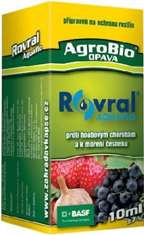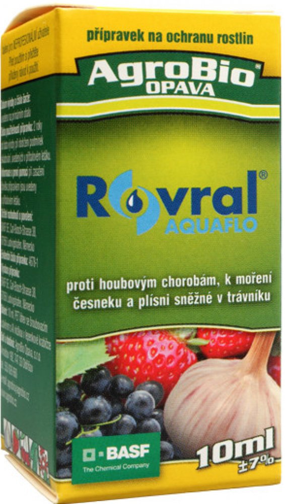 Fungicid Rovral Aquaflo je širokospektrální postřik ve formě suspenzního koncentrátu k ochraně rostlin proti houbovým chorobám, postřik proti plísním v zelenině, okrasných a ovocných dřevinách, jahodníku, revě vinné a maliníku. Moření česneku proti plísním. Fungicidní postřik proti plísni sněžné v trávníku.