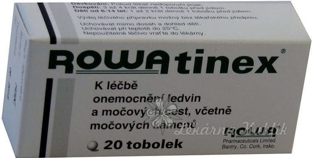 Rowatinex je směs terpenů, která zvyšuje vylučování moče, zmírňuje křeče močových cest a umožňuje rozpad, rozpouštění a vyplavování ledvinových a močových kamenů. Je účinná při akutních i chronických zánětech močových cest a překrvením ledvin přispívá ke zvýšenému vylučování moči.