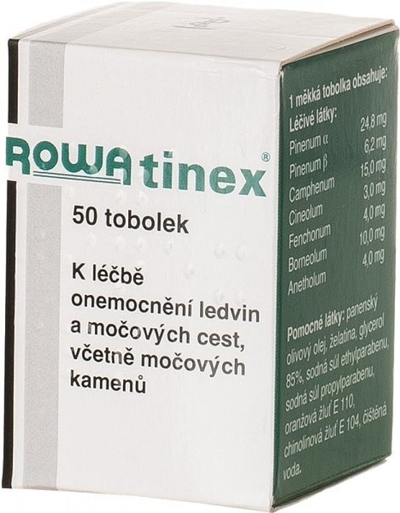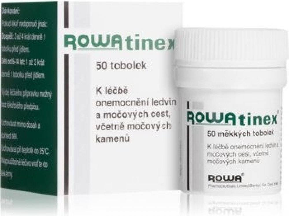 ROWATINEX je směs terpenů, která zvyšuje vylučování moče, zmírňuje křeče močových cest a umožňuje rozpad, rozpouštění a vyplavování ledvinových a močových kamenů. Přípravek se používá po poradě s lékařem k léčbě akutních i chronických onemocnění močových cest, při zánětech a infekcích močových cest, ke zmírnění zejména kolikovitých křečí. Bez porady s lékařem je vhodný při ledvinových a močových kamenech u dospělých, kdy napomáhá k jejich rozpadu, rozpouštění a vyplavování.