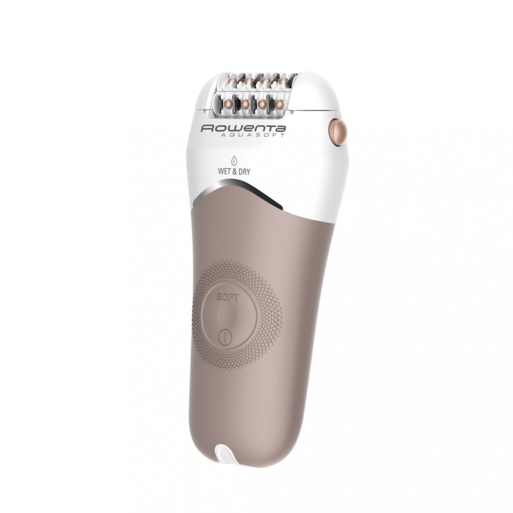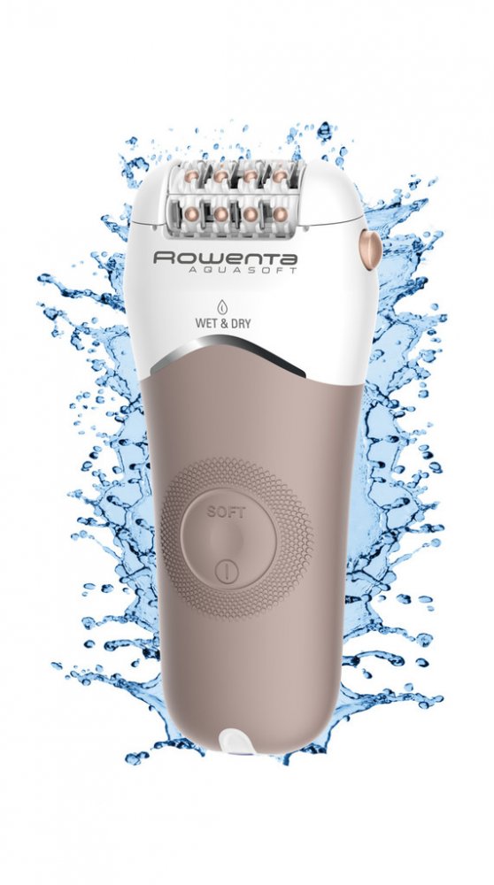 Díky technologii Wet & Dry lze epilátor Aquasoft použít pro větší pohodlí i ve vaně nebo pod sprchou. Díky svým ochranným, zklidňujícím a relaxačním vlastnostem voda snižuje tření, omezuje podráždění a začervenání i pro citlivou pokožku.
