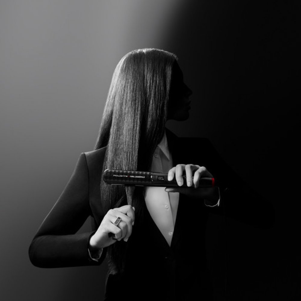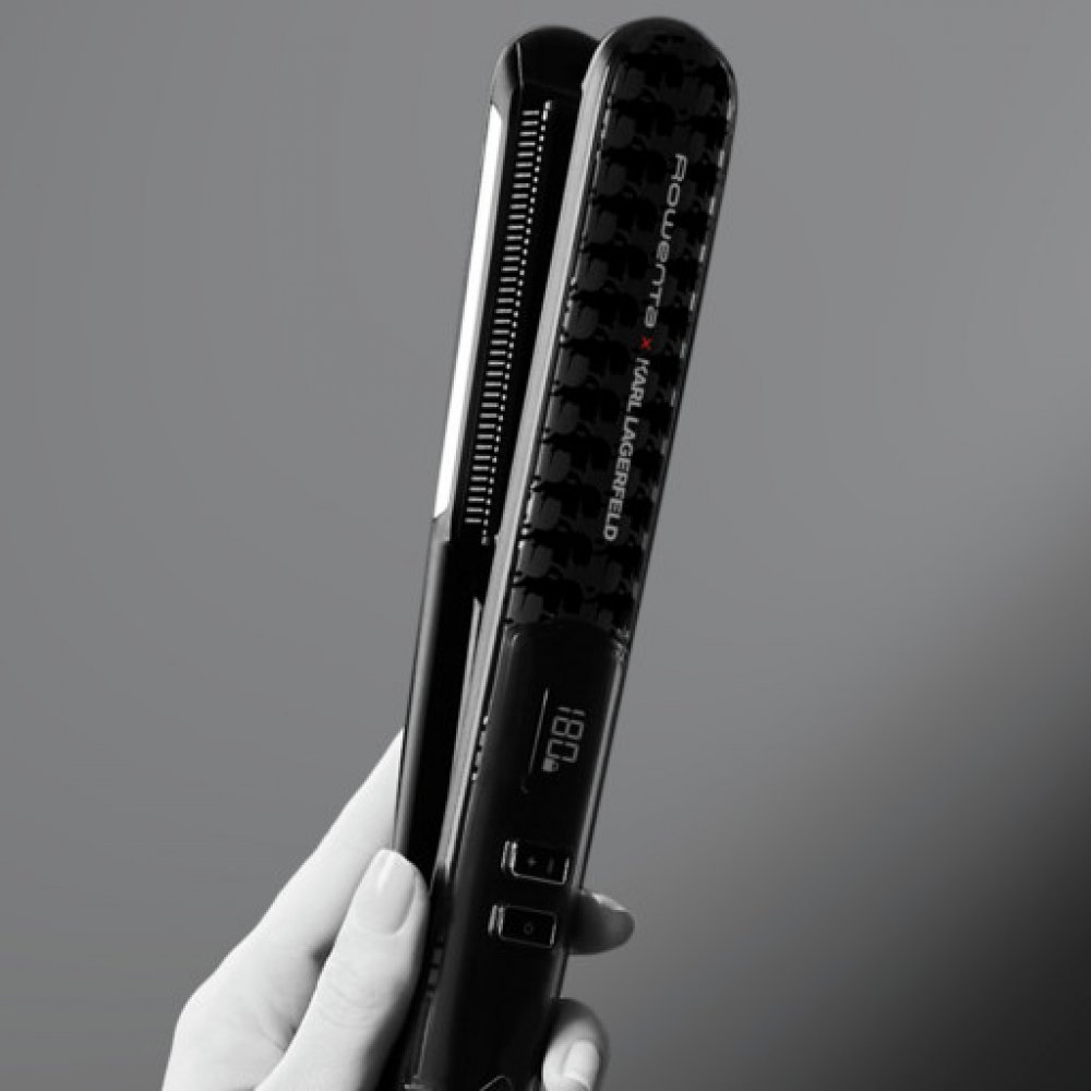 Karl Lagerfeld je ikona módního průmyslu. A žehlička na vlasy Rowenta Pro Stylist SF466LF0, jež pochází z dílny tohoto návrháře, udělá módní ikonu z vás. Díky unikátnímu integrovanému hřebínku vlasy perfektně natáhne a drží na jednom místě, a tak je vyžehlí dokonale jedním tahem, i když budete žehlit menší pramen nebo řidší vlasy.