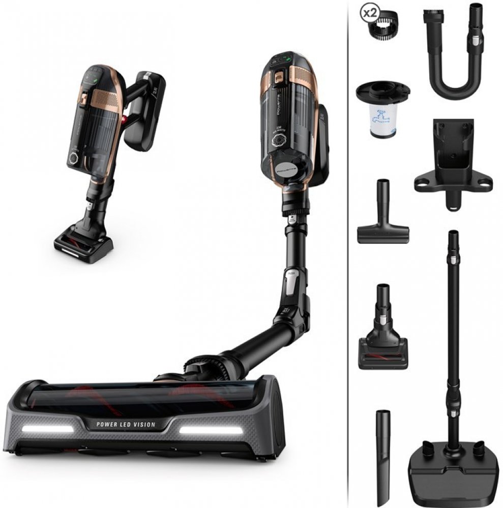 Rowenta RH99F1 X-Force Flex 15.60 bezdrátový tyčový vysavač | Digitální ovládací displej | příkon až 230 W | příslušenství na zvířecí chlupy | hubice Deep Power LED | černá/zlatáInformace o článku: Rotační vysavač Rowenta Rowenta Rowenta Rowenta Rowenta Rowenta Rowenta Rowenta RowentaVýkonný akumulátorový vysavač od společnosti Rowenta: akumulátorový tyčový vysavač s motorem DigitalForce, který poskytuje maximální sací výkon až 230 airwattů pro hloubkové čištění v celém doměDlouhá doba provozu: Odnímatelná 32,4V baterie poskytuje až 1 hodinu a 20 minut provozu spolu s XL nádobou na prach pro úklid celého domu na jeden zátahInteligentní detekce podlahy: Automaticky upravuje výkon podle typu podlahy pro optimální výsledky a delší výdrž baterie, Flex artikulace: Konstrukce s technologií Flex dosáhne hluboko pod nábytek pro kompletní úklid bez ohýbání, včetně hubice Deep Power LEDÚčinnost na dosah ruky: Digitální kontrolní displej zobrazuje zbývající dobu provozu každou minutu a umožňuje přizpůsobit výkon vašim potřebám pomocí 4 různých úrovní a režimu Boost, Pokročilý systém: Pro 99,9% filtraci a dlouhotrvající separaci vzduchu a prachuPříslušenství na zvířecí chlupy: Mini elektrický kartáč, mini flexi hubice, štěrbinová hubice, kartáč na čalounění, extra filtr a dva integrované snadné kartáče, Volně stojící nabíjecí stanice: Zajistí, že váš vysavač bude vždy nabitý a veškeré příslušenství bude vždy po ruce Nejvýkonnější akumulátorový vysavač Rowenta: špičková technologie a maximální flexibilita Akumulátorový vysavač Rowenta X-Force Flex 15.60 nabízí spolehlivý sací výkon a maximální flexibilitu pro moderní a nevídaný zážitek z úklidu! Nekonečné možnosti Řešení bez námahy pro snadný úklid v celém domě, nejen na podlahách: výkonné hloubkové čištění a všestranné pokrytí povrchů s přístupem do každého koutu. Mimořádně výkonný a účinný na všech podlahách Výkonný motor Digital Force poskytuje silný vzduchový výkon 230 W inteligentní automatický režim zajišťuje, že se XForce automaticky přizpůsobí podlahové krytině a nezávisle upravuje rychlost a výkon pro efektivní výsledky úklidu. Digitální ovládací displej Kompletní ovládání s 5 nastaveními, včetně automatické rychlosti pro přizpůsobení úrovně výkonu vašim potřebám, zobrazení zbývajícího výkonu v reálném čase a zobrazení úrovně výkonu Rowenta X-Force Flex 15.60 RH99F1WO - Vysavač - tyčový krátký/ruční (2 v 1) - bezsáčkový - bezdrátový Nabíječka je součástí dodávky