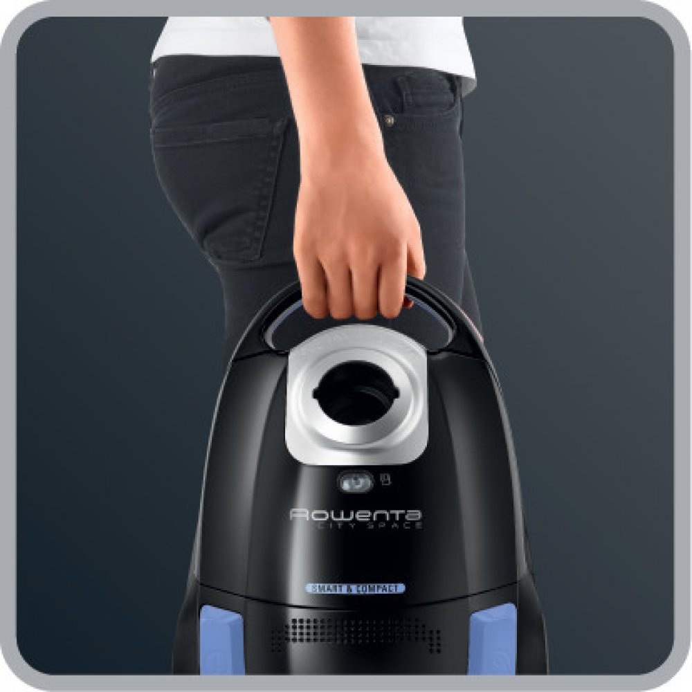 Vysoce intuitivní a přirozené vysávání díky ergonomickému designu se dvěma extra velkými koly pro lehčí a volnější pohyb. Cyklonový systém dosahuje vysoké úrovně separace prachu ze vzduchu pro efektivní výkon a výsledek vysávání. Vysoce účinná sací hubice zajišťuje optimální hloubkové vysávání na všech typech povrchů, s účinností A na tvrdých podlahách. Vysoká energetická účinnost díky výkonnému motoru Eco Efficient a úspoře energie v podobě nízké spotřeby energie. Štěrbinová hubice 2v1 je integrovaná přímo ve vysavači pro vynikající vysávání i na obtížně přístupných místech. Extra kompaktní provedení nabízí dvě parkovací polohy pro možnost praktického uložení. Velké madlo pro snadné přenášení.