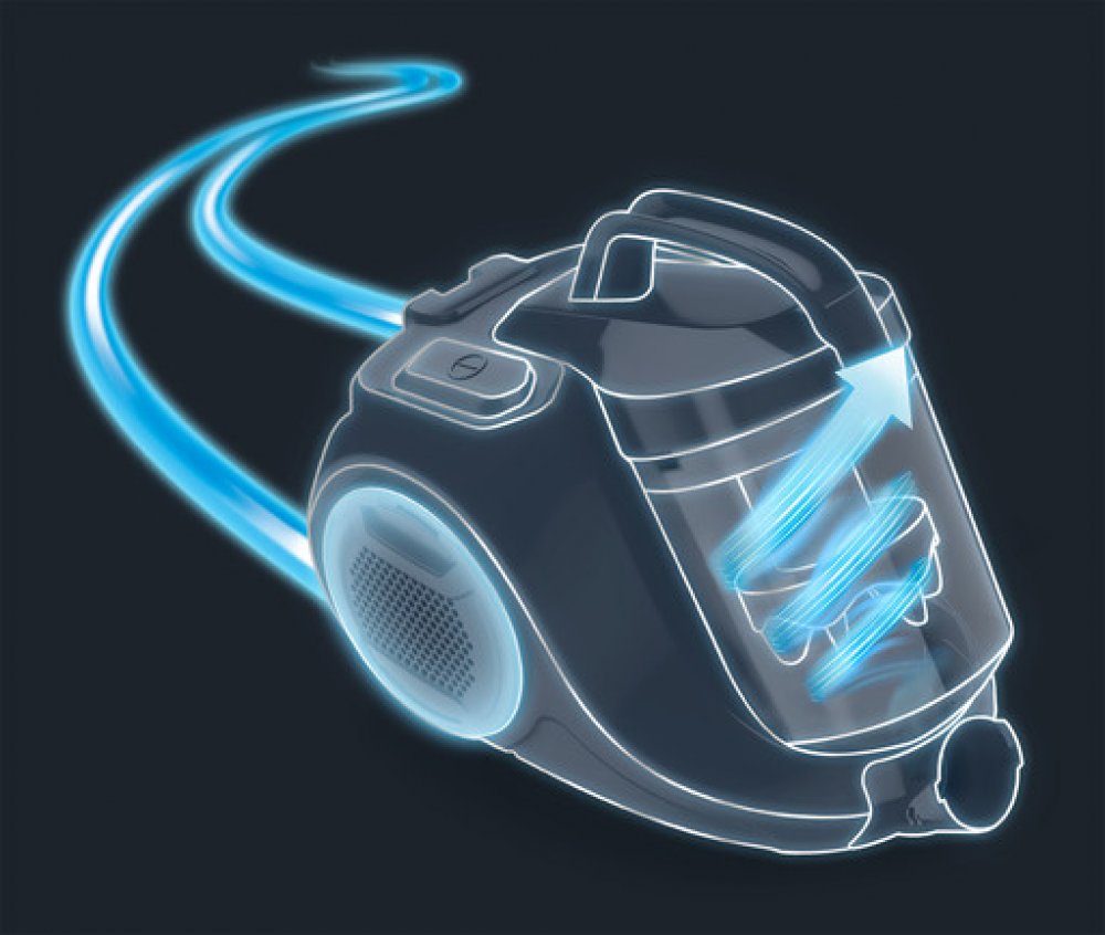 Výkonná pokročilá cyklonová technologie zajišťuje vysoký stupeň separace prachu ze vzduchu, a tím i velice účinný úklid s dlouhotrvajícími výsledky