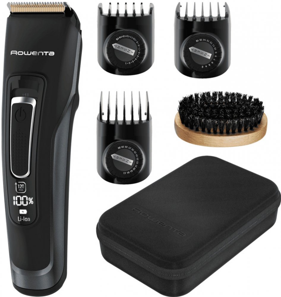 multifunkční zastřihovač • použití na vlasy a vousy • samoostřicí břit • Li-Ion akumulátor • výdrž baterie / doba nabíjení: 120 minut / 90 minut • délka zastřižení: 0,5 mm (bez nástavce) / 3–30 mm • počet nástavců: 4 • nejdůležitější příslušenství: 2× hřeben pro zastřižení od 0,5 (bez nástavce) do 30 mm, 1× precizní zastřihovač na vousy, 1× kartáč na vousy