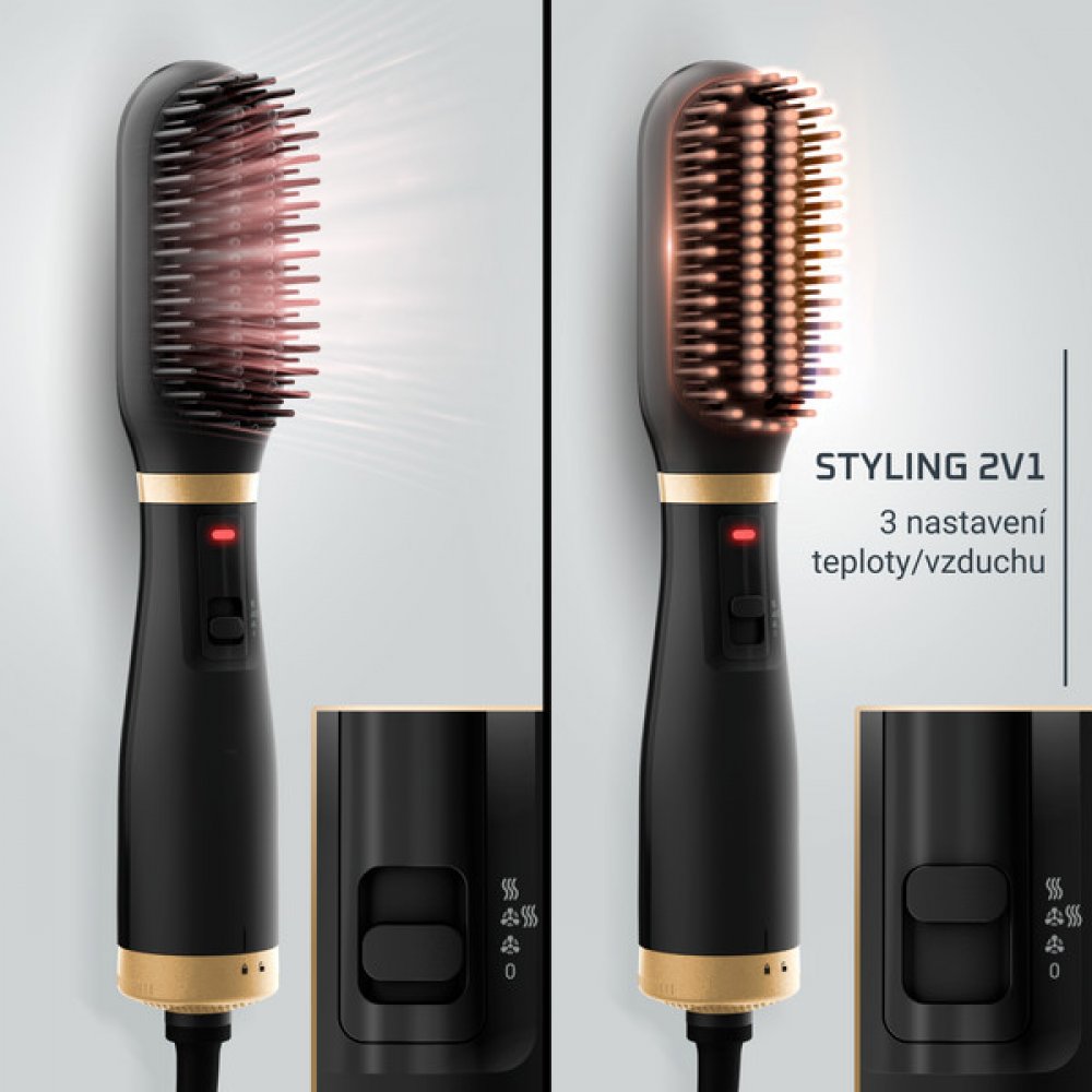 Horkovzdušný žehlicí kartáč Rowenta Powerstraight Air, který současně vysouší a narovnává vlasy. 3 nastavení teploty a vzduchu. Ionizátor snižuje statický náboj, zatímco náš exkluzivní keramický povrch zajišťuje dokonalý skluz a zářivý lesk. Kompaktní, le