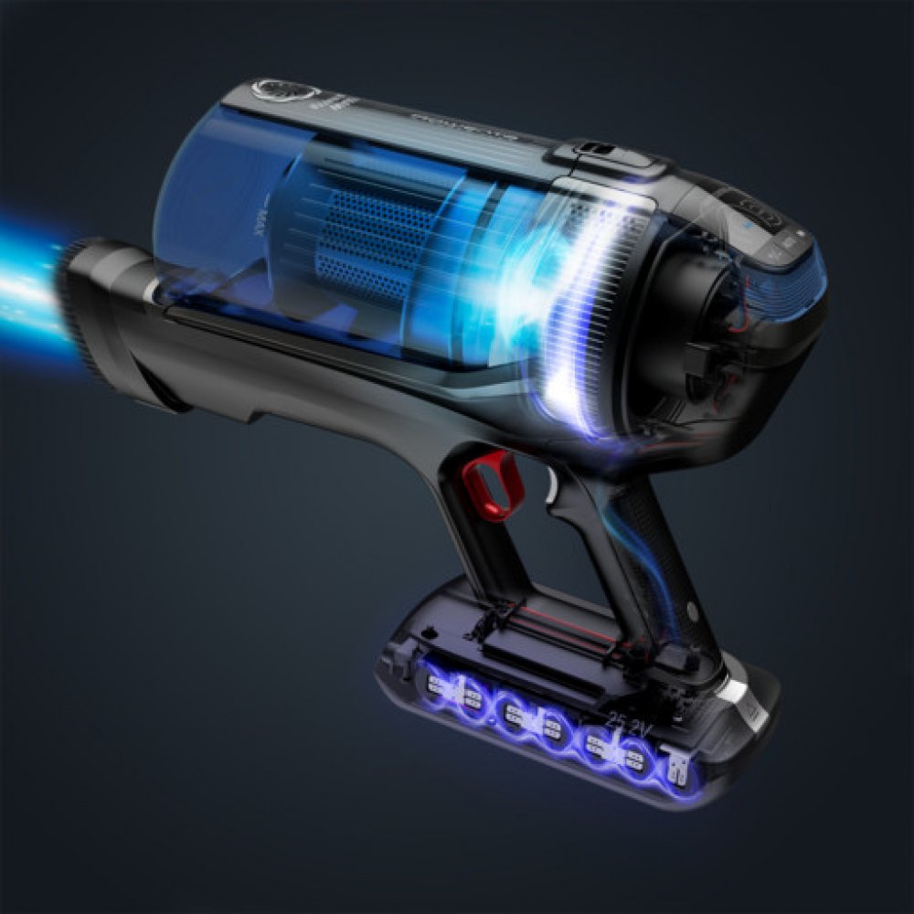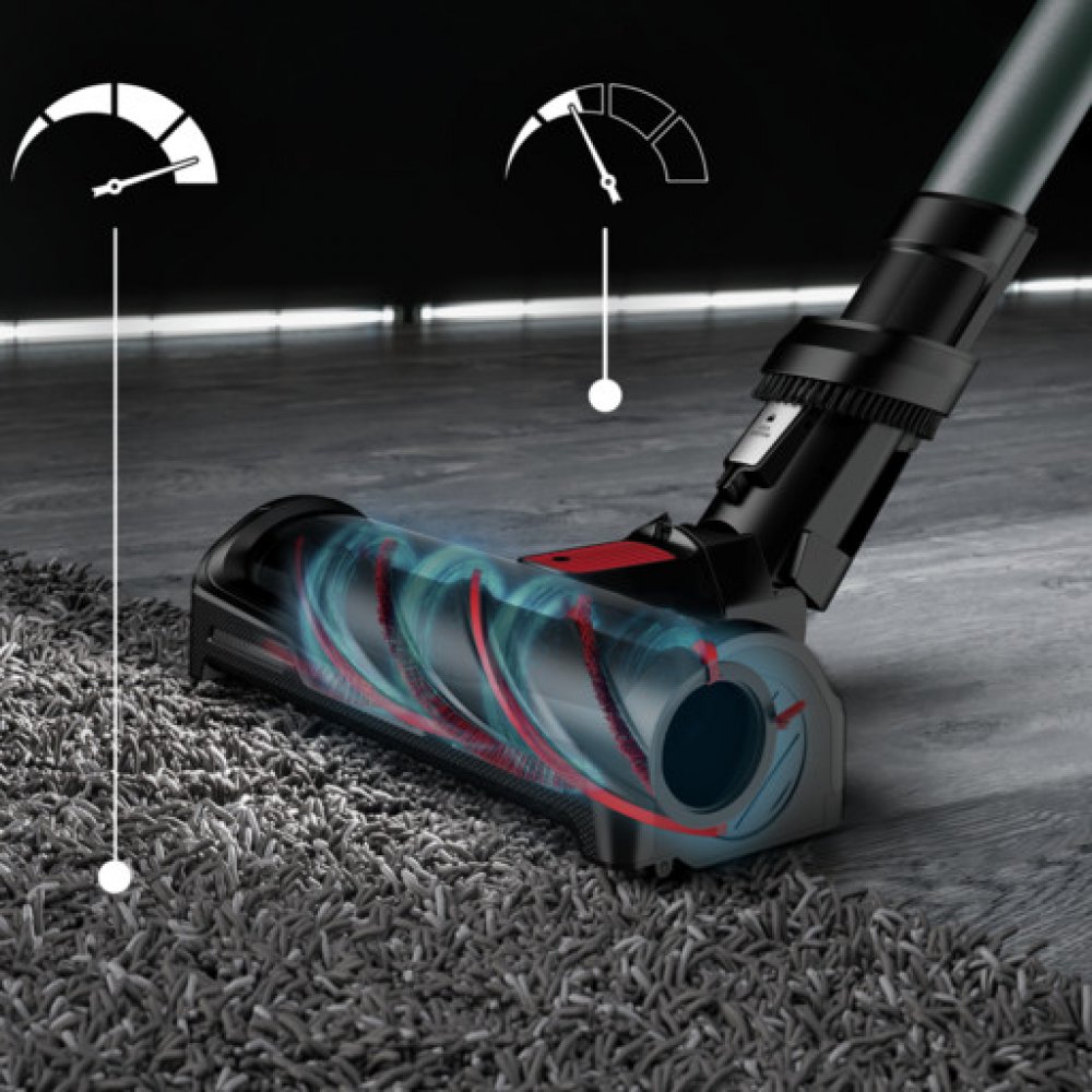 Tyčový vysavač 4v1. Cyklónová technologie vysávání. Digitální motor se sacím výkonem 100-200AW. Lithium ion baterie s výdrží až 45 minut. LED osvětlení systém Vision. Automatické přizpůsobení výkonu vysávanému povrchu. 2v1 vytírání a vysávání pro zkrácení doby úklidu. Displej s informacemi o zbývající baterie. Trubice Flex pro vysávání bez ohýbání. 99,9% HEPA filtrace.