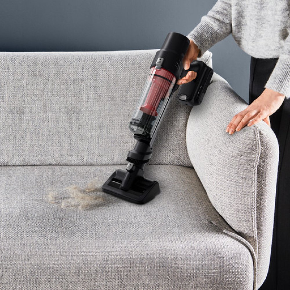 Štíhlý a lehký design - hmotnost ručního vysavače: 1,2 kg a tyčového 2 kg - umožňuje úklid bez kabelu a v naprostém pohodlí