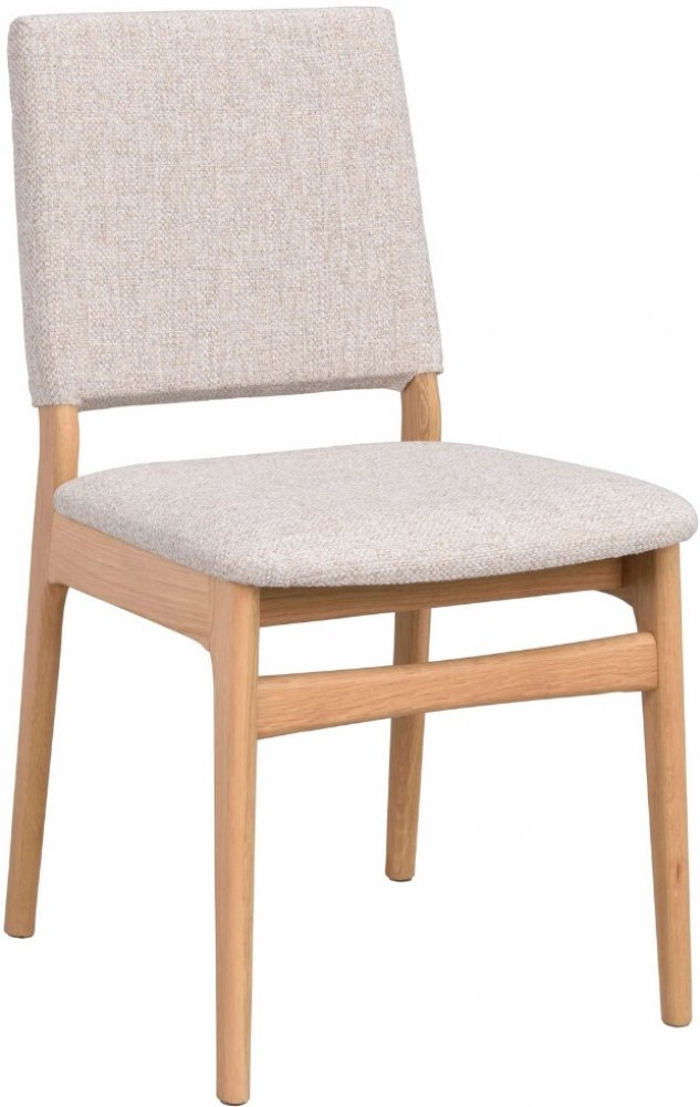 Jídelní židle Medford z dubového dřeva a světle béžové látky působí lehce, vzdušně a přirozeně elegantně. Její design citlivě vyvažuje zaoblené a rovné linie, díky čemuž vytváří harmonický a nadčasový celek. Opěradlo a sedák jsou navrženy s důrazem na pohodlí a poskytují jemnou, ale dostatečnou oporu při sezení, aniž by židle v prostoru působila robustně. Díky štíhlé konstrukci a nízké vizuální hm...