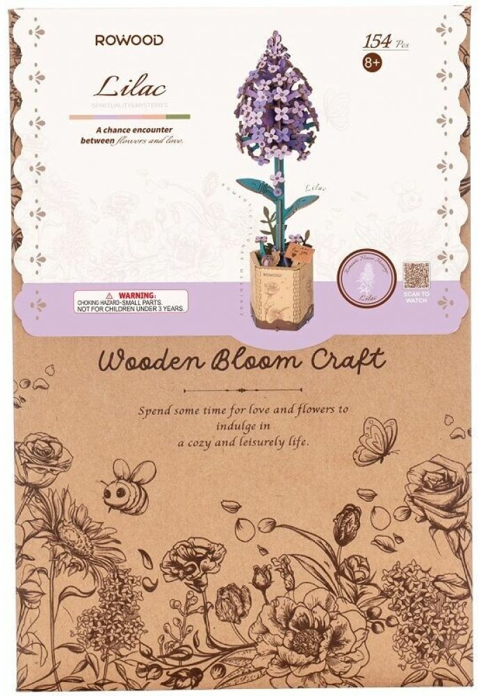 Přijměte podmanivý šarm dřevěného modelu, který symbolizuje první lásku a klid. Tento fialový model se svými světle fialovými květy vzkvétajícími na jaře vdechne do vašeho okolí nádech přirozené elegance.Tento DIY model dřevěného květu se dodává se 154 předbarvenými kousky , které vám ušetří čas na montáž. Model je určen pro děti od 8 let a lze jej snadno složit do 30 minut bez potřeby lepidla. Díky tomu je to perfektní aktivita pro začátečníky i pro malé děti.Flexibilní stonek a otočný květinový design vám umožňují vytvořit jedinečné květinové aranžmá. Ať už ji chcete vystavit samostatně v přiloženém ekologickém kraftovém květináči nebo ji spárovat s jinými květinami ze série a vytvořit tak úžasnou kytici, model Šeříku nabízí nekonečné možnosti.Dřevěný model šeříku je však víc než jen dekorativní kousek. Zjištění toho, jak různé části do sebe zapadají, podporuje kognitivní cvičení a zvyšuje pozornost věnovanou detailům. Živé barvy dřevěného květu navíc přinesou do vašeho prostoru nikdy nevadnoucí eleganci, díky čemuž je cenným doplňkem vašeho domova.Model šeříku je vyroben z odolného lipového dřeva z vysoké zeměpisné šířky severní studené zóny. Dřevo je jemné a rovnoměrné, má hedvábný lesk a je odolné vůči opotřebení, korozi a není snadné ho prasknout.