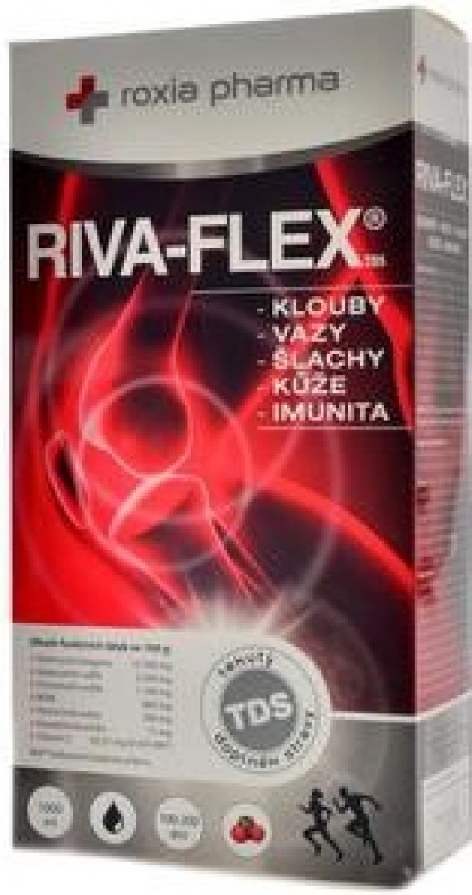 RIVA-FLEX je unikátní šestisložková kloubní výživa s antioxidanty. Obsahuje kolagen, glukosamin sulfát, chondroitin sulfát, MSM, vitamin C a kyselinu hyaluronovou v optimálních poměrech pro člověka. Jako antioxidant zde pracuje standardizovaný brusinkový extrakt s řadou pozitivních účinků i na močový systém a další orgány. Vitamin C přispívá ke komplexní funkci RIVA-FLEXu a podporuje jeho antioxidační působení.